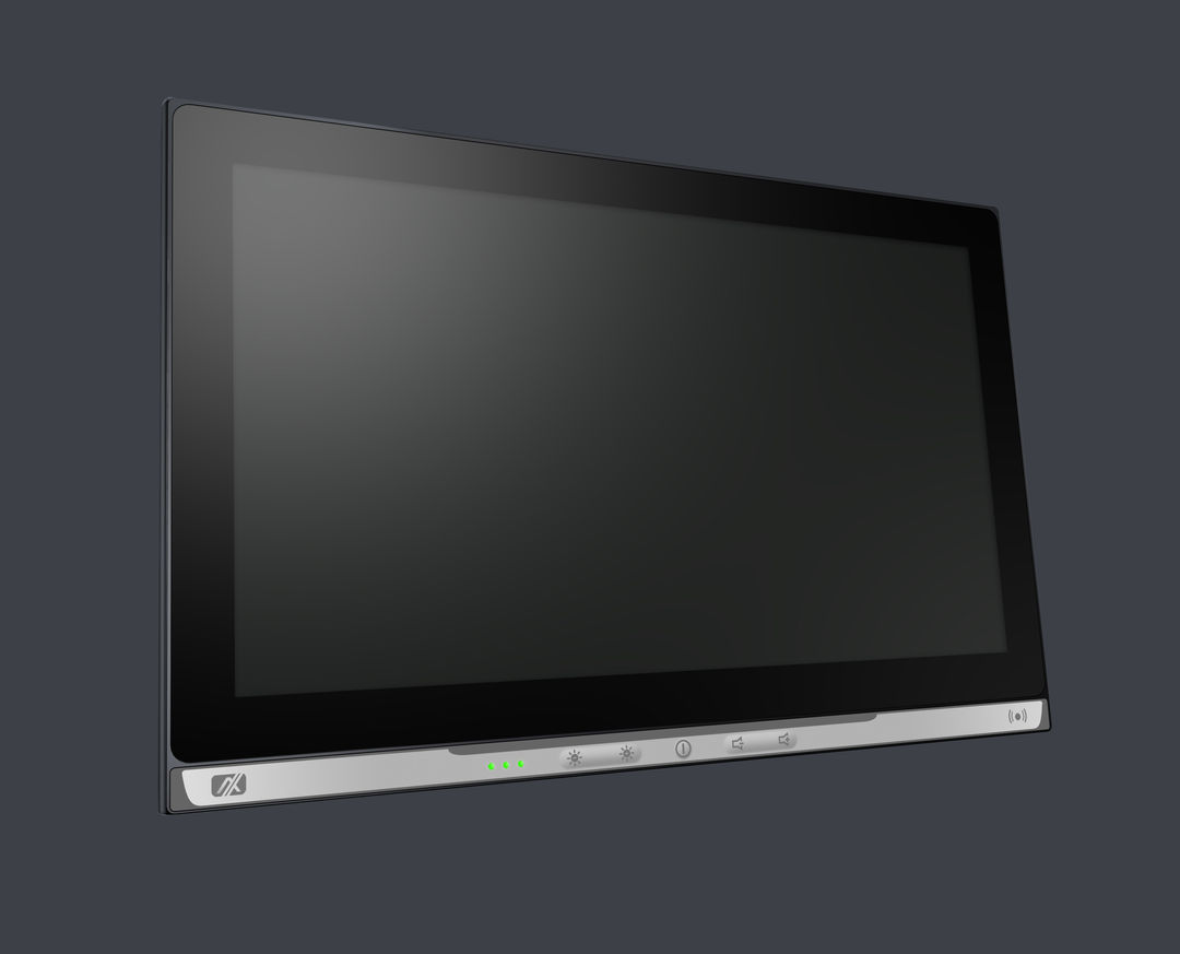 This fanless panel PC design is a cost effective solution in response to market demand. By using different color schemes of the device and the graphics of the button section to distinguish Industrial or Medical application.